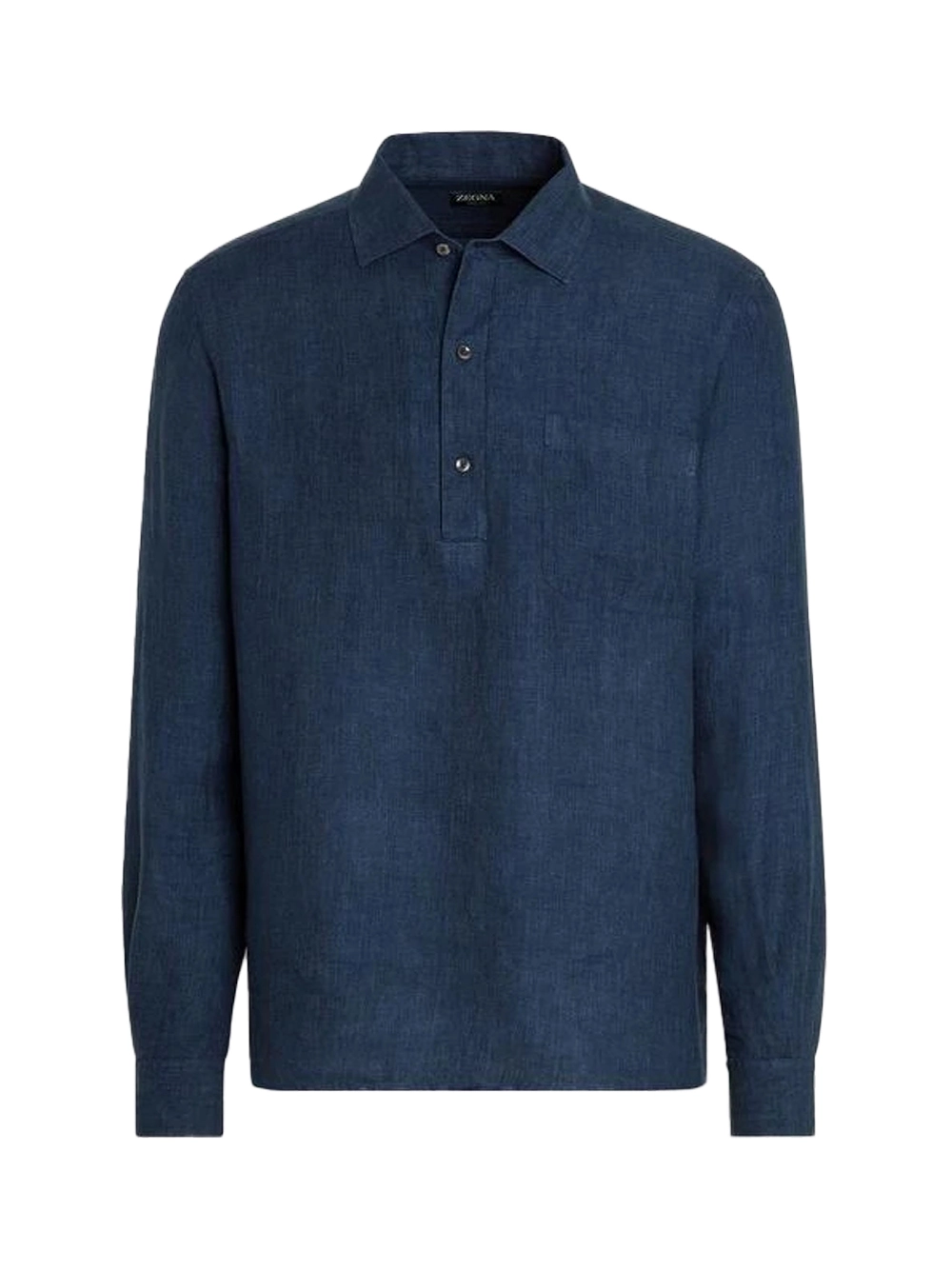 Refresh your smart-casual attire with zegna refined navy shirt. The shirts zegna offer a regular fit and the unique zegna shirt half placket. Coordinate this navy shirt with its exquisite curved hem with the Zegna shirt. This shirts zegna staple, includes tonal mother-of-pearl buttons and a chest patch pocket.