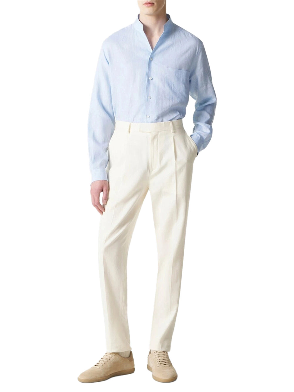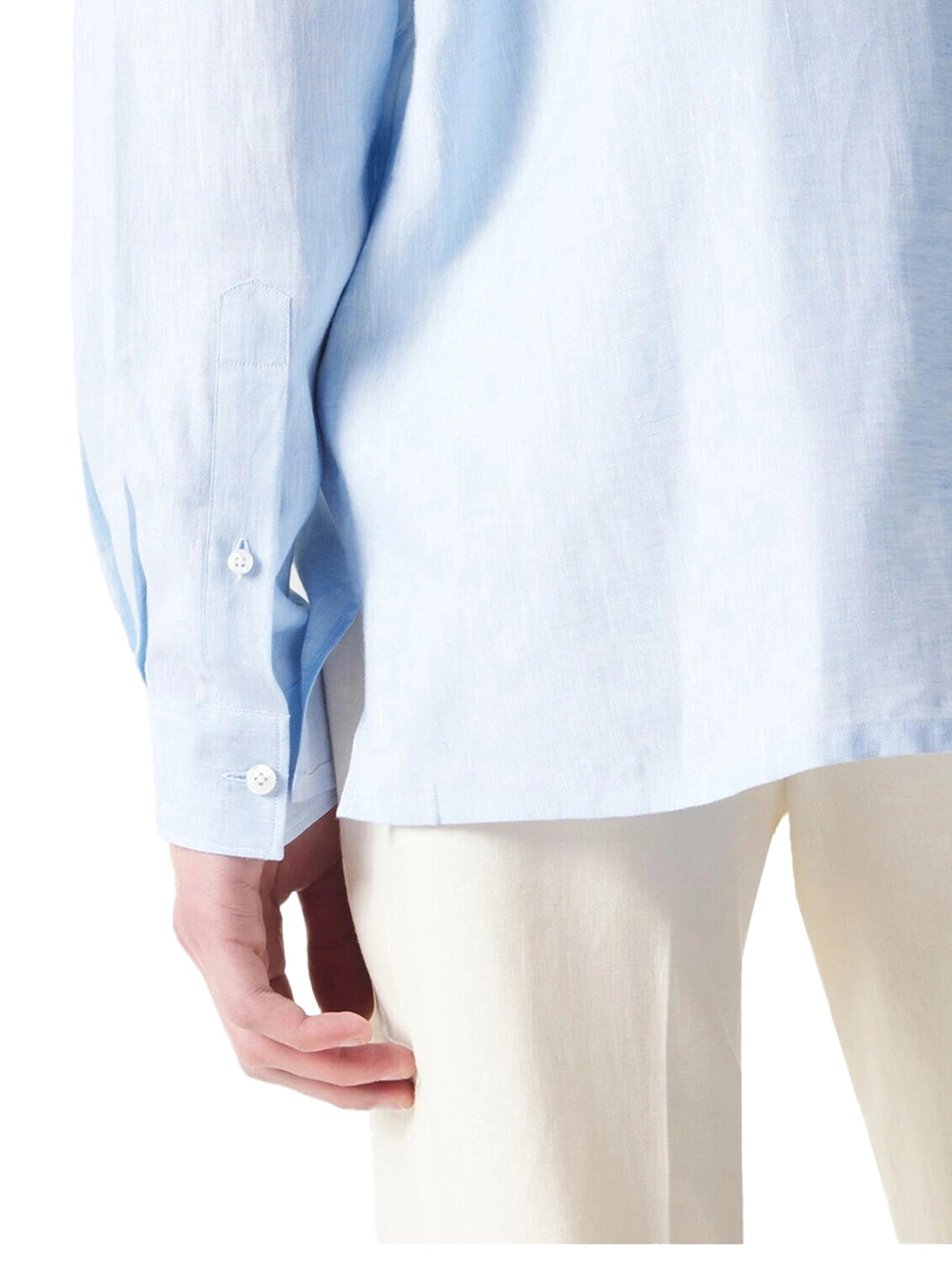 Upgrade your summer rotation with zegna premium linen shirt. The zegna shirts offer a rounded chest pocket and iconic zegna shirt tailoring. Experience authentic Made in Italy quality on this light blue linen shirt. This zegna shirt provides button cuffs and a sharp, button-down front.