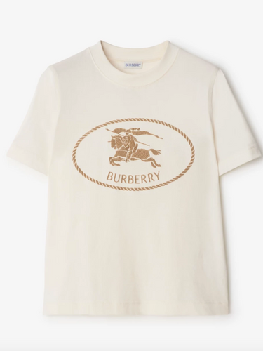 Experience understated luxury with this Burberry t-shirt, crafted from 100% premium cotton knit in a versatile chalk white hue. This classic Burberry shirt features a comfortable ribbed crew neckline that maintains its shape perfectly. The quality craftsmanship ensures lasting durability in this essential Burberry t shirt womens, designed for everyday sophistication. Discover the perfect balance of comfort and style in this timeless Burberry tshirt, offering effortless elegance for the modern woman's wardrobe with its premium cotton construction and impeccable fit.