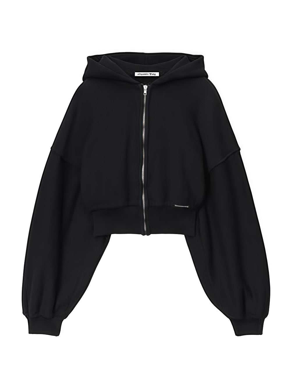 The garment features ribbed trims at the hem and cuffs, ensuring a tailored fit that combines warmth and comfort. The wave zipper adds a distinctive touch, while the left ribbed hem proudly displays the Alexander Wang logo tag for a signature finish. This hoodie represents the pinnacle of modern design, making it a must-have for those who appreciate luxury streetwear with a refined edge. This hoodie is ideal for wearing in a layered way over casual outfits, and is a versatile piece that can be worn from day to night with ease.