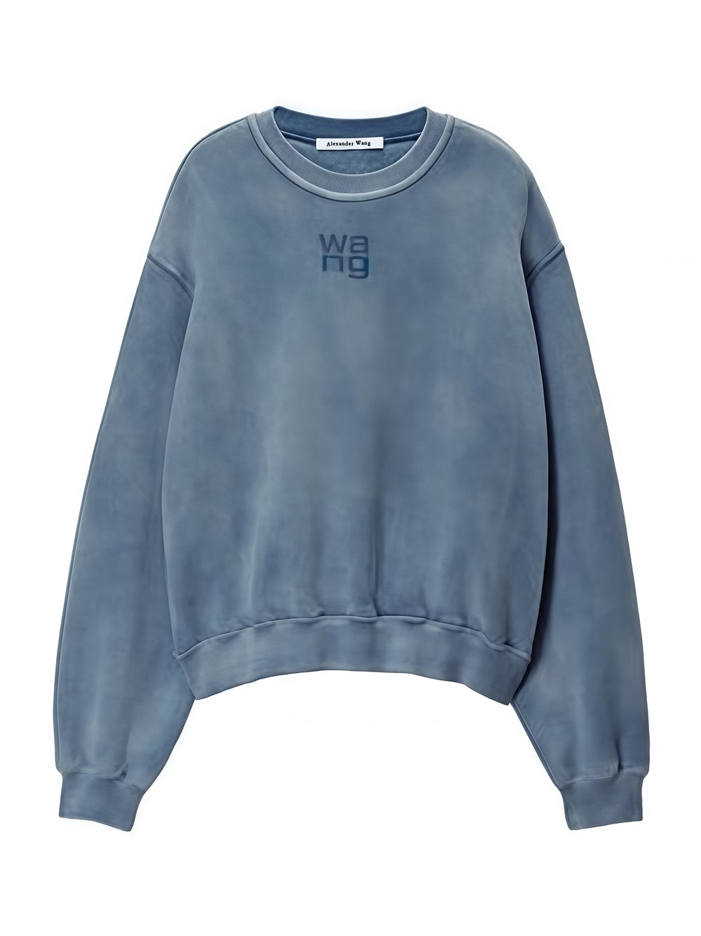 The sweatshirt is crafted from brushed terry fleece, providing a soft and cosy feel that is ideal for transitional layering or as solo wear. The logo, featuring a stacked bubble-effect "Wang" in a striking W. blue ink color way, is the most striking feature. This textured, dimensional graphic delivers instant impact.
