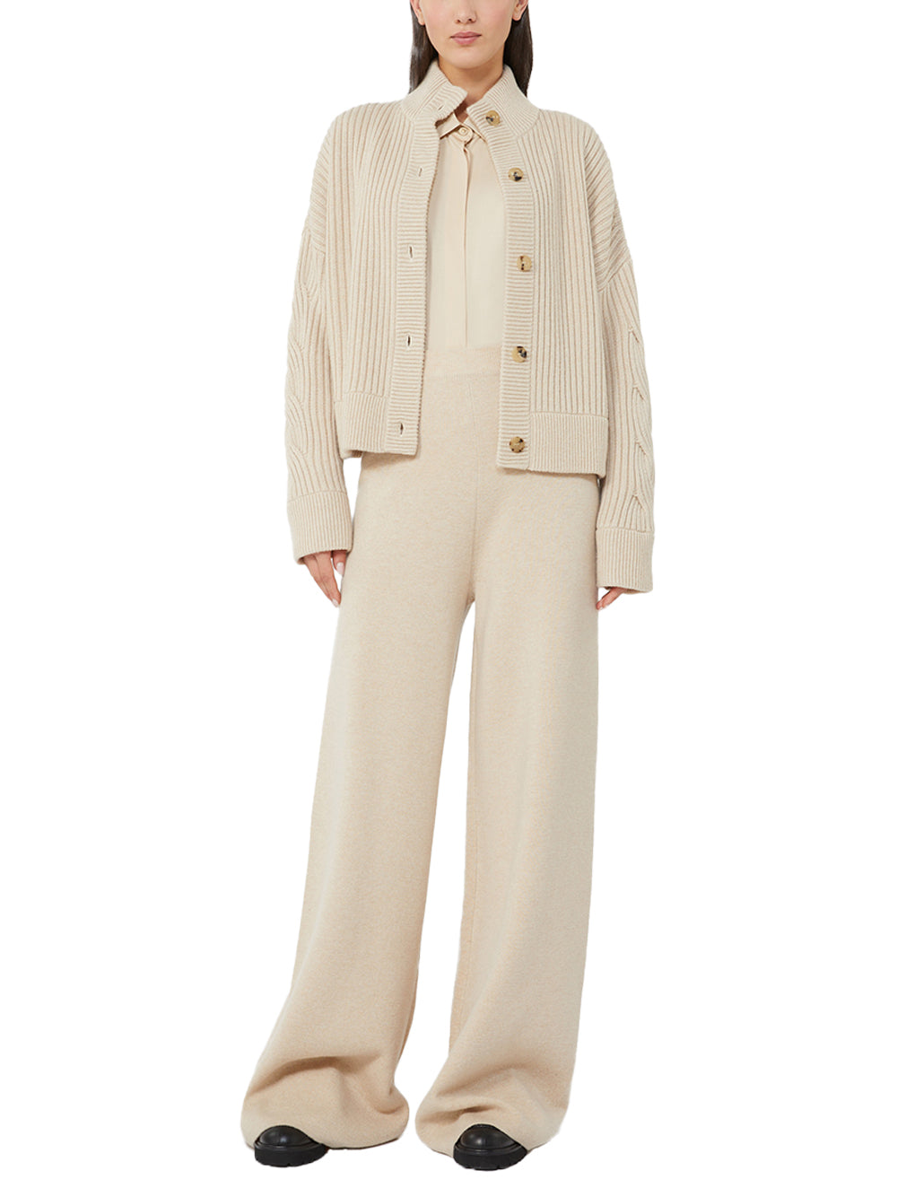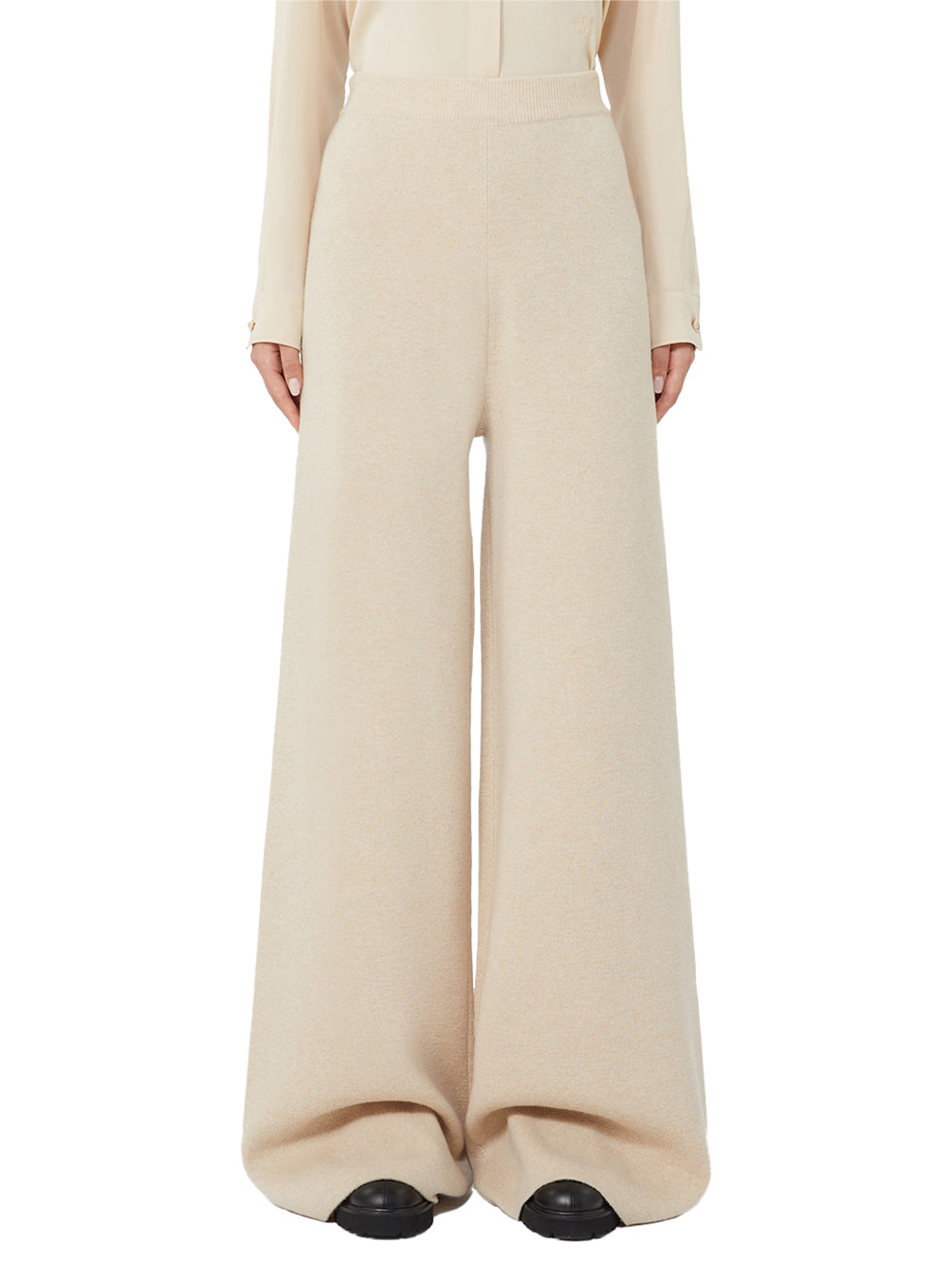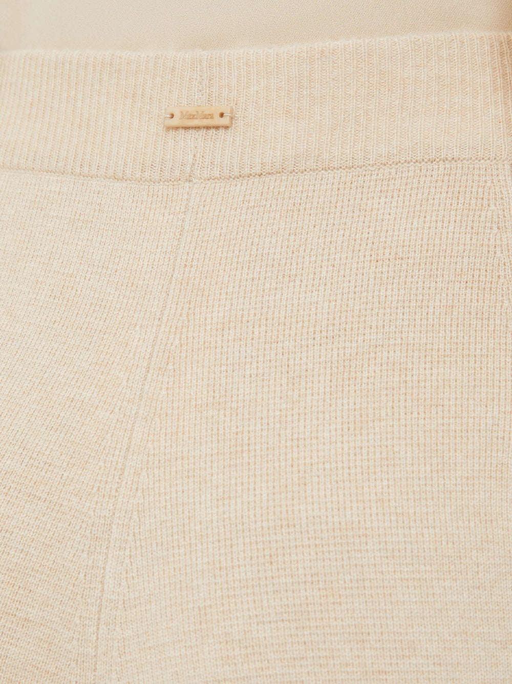 Discover sophisticated comfort with Max Mara Judy trousers in elegant beige. Crafted from premium wool and cashmere yarn, these straight-cut max mara trousers feature an elasticated ribbed waist for exceptional comfort. The refined trousers Max Mara design includes back waist darts and a signature logo plaque at the back waistband. Perfect for both professional settings and smart-casual occasions, these luxurious Max Mara pieces offer timeless elegance for London's discerning wardrobe.